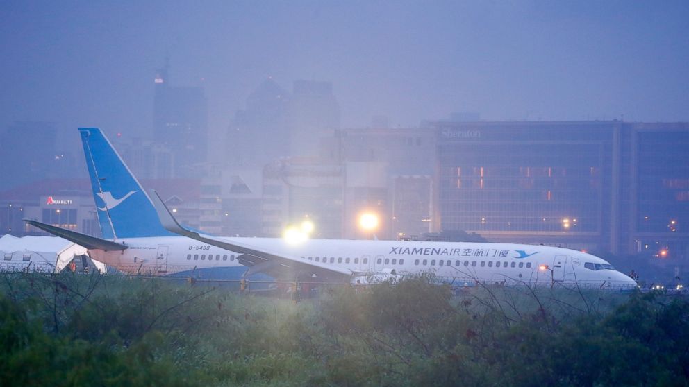 Chinese plane skids off Manila runway in downpour, all safe