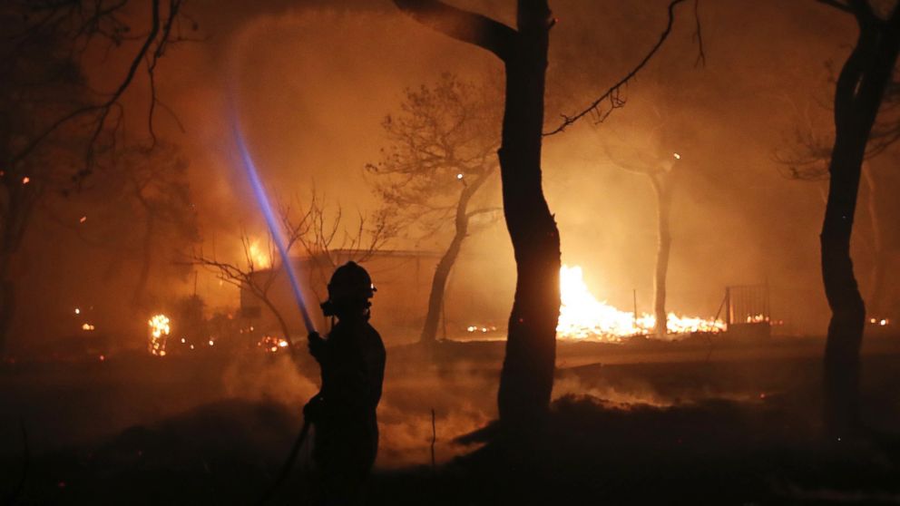 Twin wildfires in Greece kill at least 24, injure at least 100