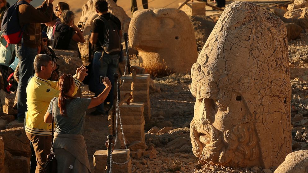AP PHOTOS: Sunset on Turkey’s massive stone heads